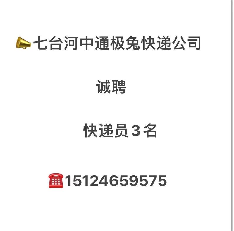 ??七臺河中通極兔快遞公司誠聘